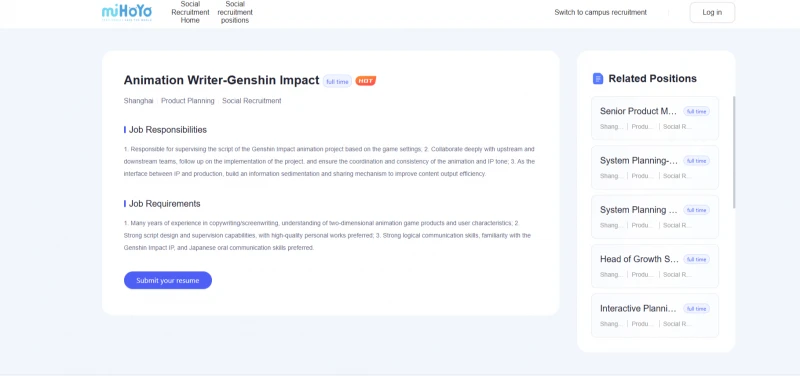 На сайте HoYo в разделе вакансий появилась новая. Будущий сценарист будет курировать разработку сюжета на основе игрового лора, взаимодействовать с командами на всех этапах производства и следить за соответствием анимации общему тону IP. Требования к кандидатам высокие: многолетний опыт в написании сценариев, знание мира/лора Genshin Impact, а также навыки устного общения на японском, по всей видимости, чтобы лучше коммуницировать с представителями Ufotable, которые, как легко предположить, японцы.