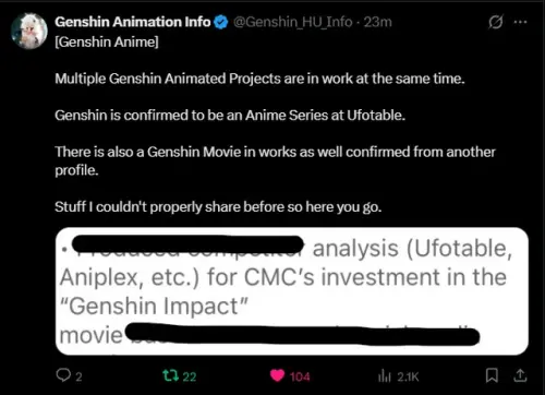 Вокруг анимационных проектов по Genshin Impact вновь появились свежие утечки. По словам инсайдеров, речь может идти не об одном аниме, а сразу о нескольких проектах, которые находятся в разработке одновременно.